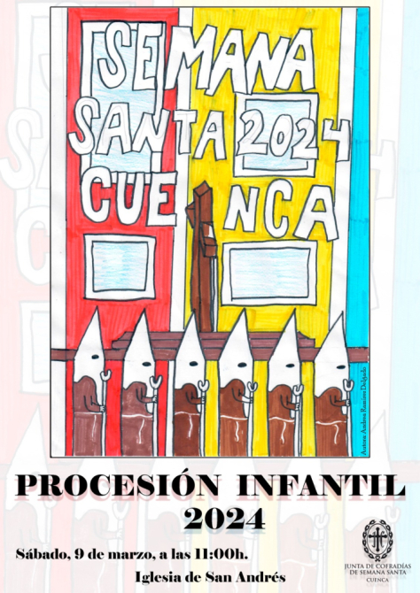 El próximo sábado 9 de marzo tendrá lugar la ya tradicional Procesión Infantil, organizada por la Junta de Cofradías de la Semana Santa de Cuenca. Desde la Vble. Hdad. y Cofradía de Nazarenos de San Juan Evangelista participaremos un año más con nuestro paso. Invitamos a todos los niños a participar, revestidos con túnica morada, fajín y guantes verdes, escudo prendido en el pecho y zapato negro.